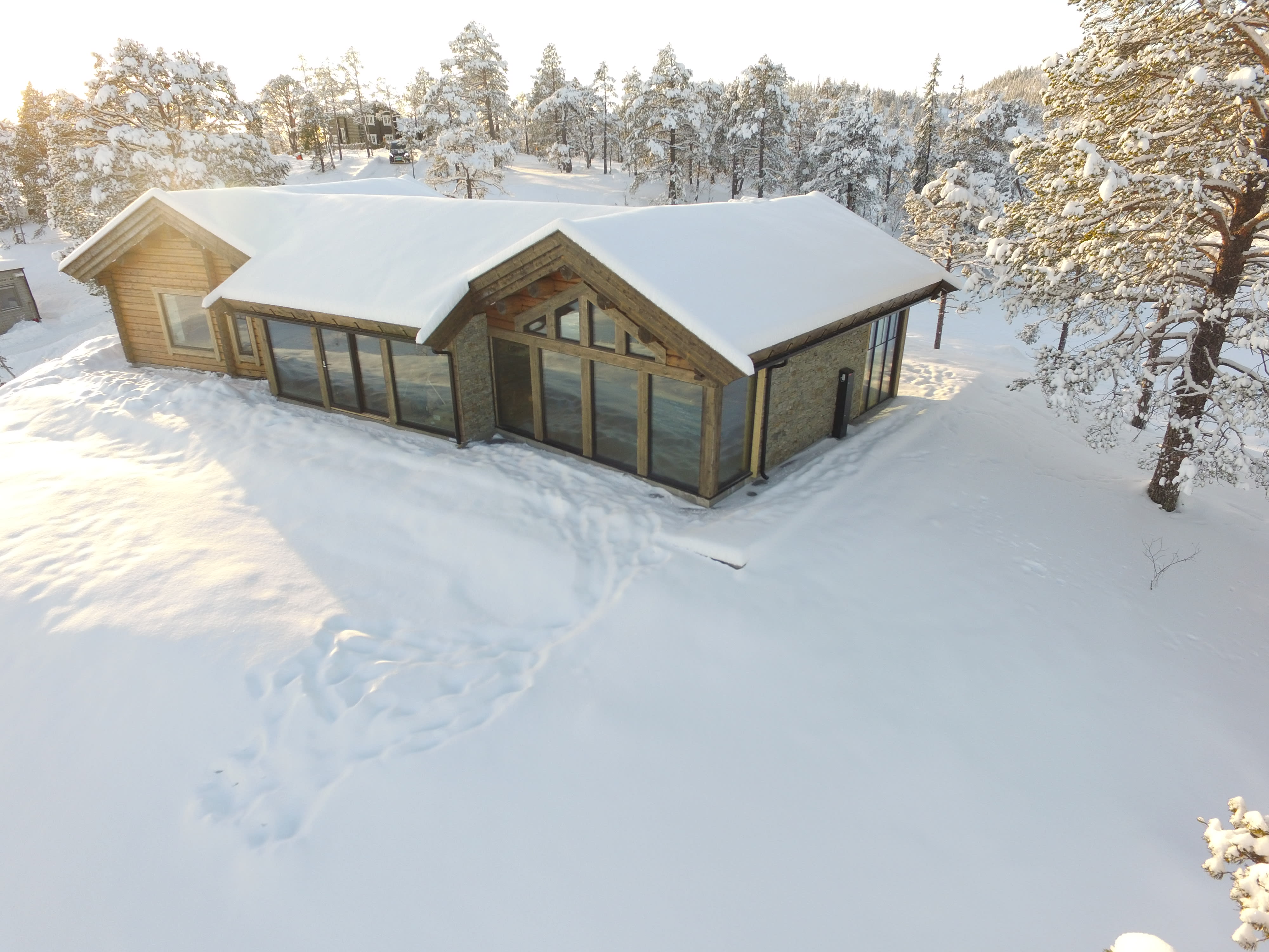 - De fleste velger tradisjonelle fasader. Vi er begeistret for å kombinere gammel tradisjon med det moderne. Store glassflater, mot tømmer og stein på fasaden er veldig lekkert sammen. Hytta vil fremstå som moderne nordisk, uten å miste den tradisjonelle hyttestilen.