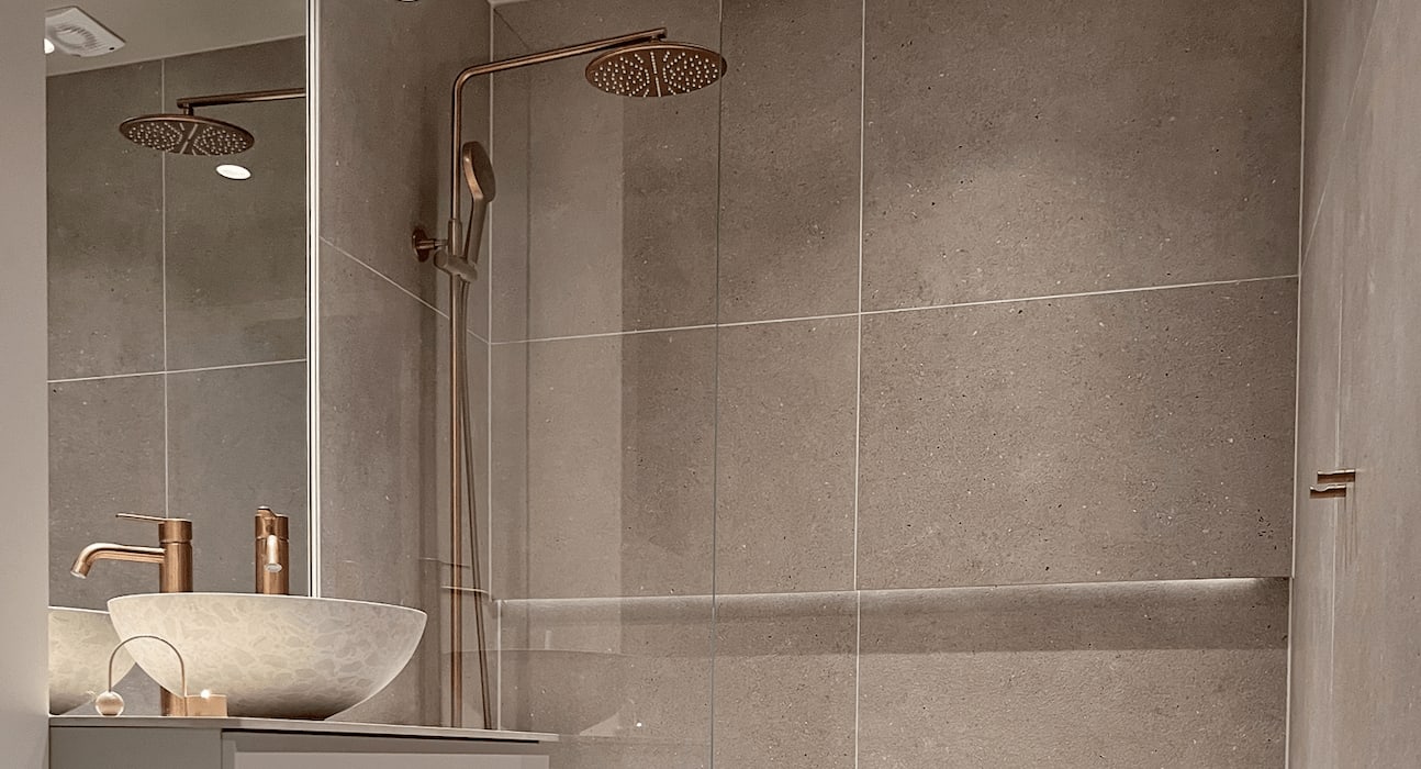 - Jeg elsker fargepaletten, og den roen jeg får i rommet. Skal jeg velge ut et element, må jeg si at jeg er utrolig fornøyd med overgangen mellom flis og speil, atskilt med en glassvegg som strekker seg fra badekarskanten helt opp til taket. Denne overkanten er en perfekt sømløs overgang som også er med på å bevare roen i rommet. Dusjveggen tar da ikke oppmerksomheten bort fra den flotte flisen bak. Her ønsket vi at den fine strukturflisen skulle få poppe frem.